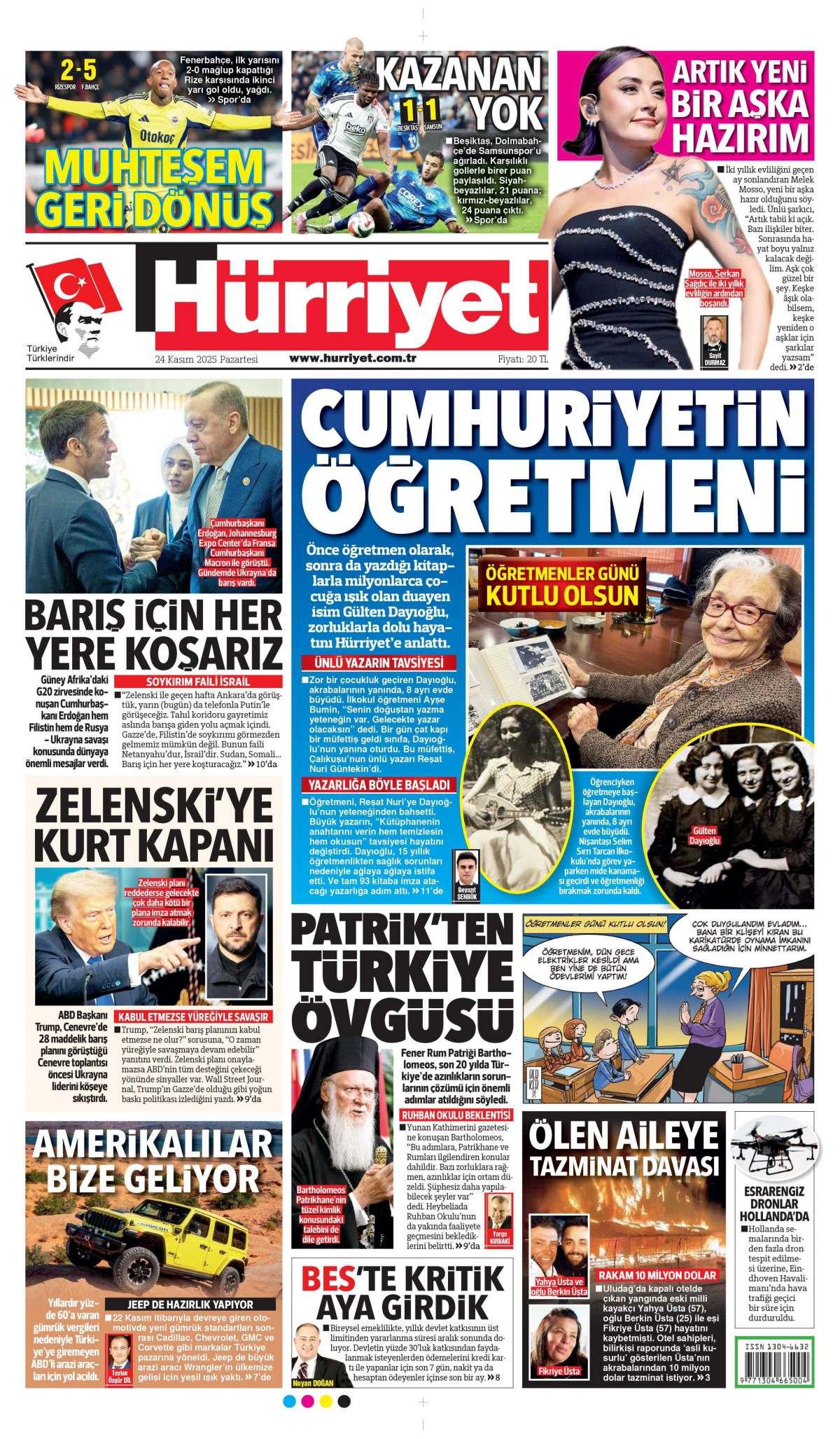 Hürriyet Gazetesi 24 Kasım 2025 Günü Manşeti