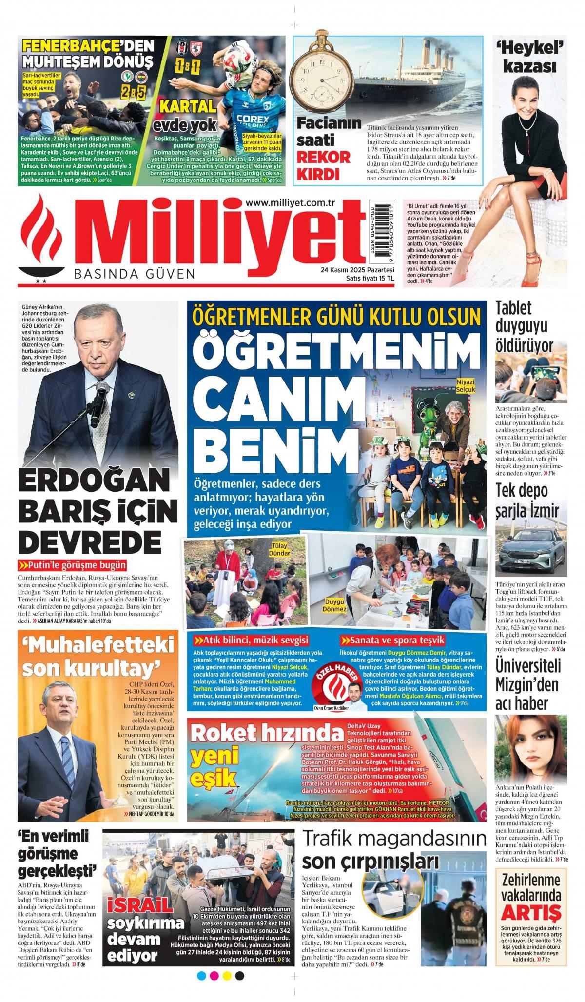 Milliyet Gazetesi 24 Kasım 2025 Günü Manşeti